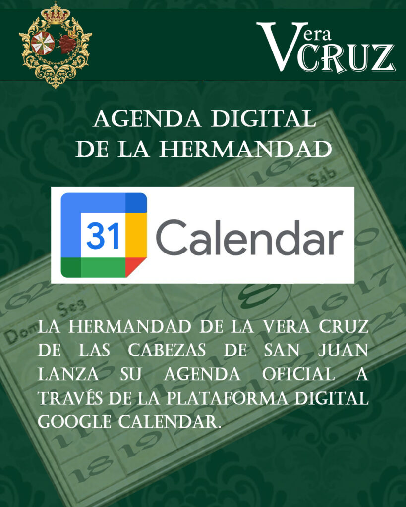n nuestro afán de que nuestros hermanos y devotos estén informados de todos los actos y cultos que realiza nuestra hermandad, cualquier persona podrá incorporar la agenda oficial Vera Cruz a Google Calendar, pudiéndola consultar de forma ágil y sencilla desde su dispositivo móvil u ordenador.